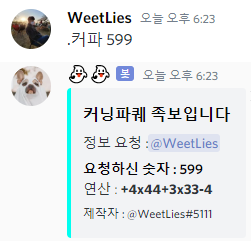 커닝파퀘 연산문제에서 나온 숫자를 입력하면 연산하는 식을 보여준다.